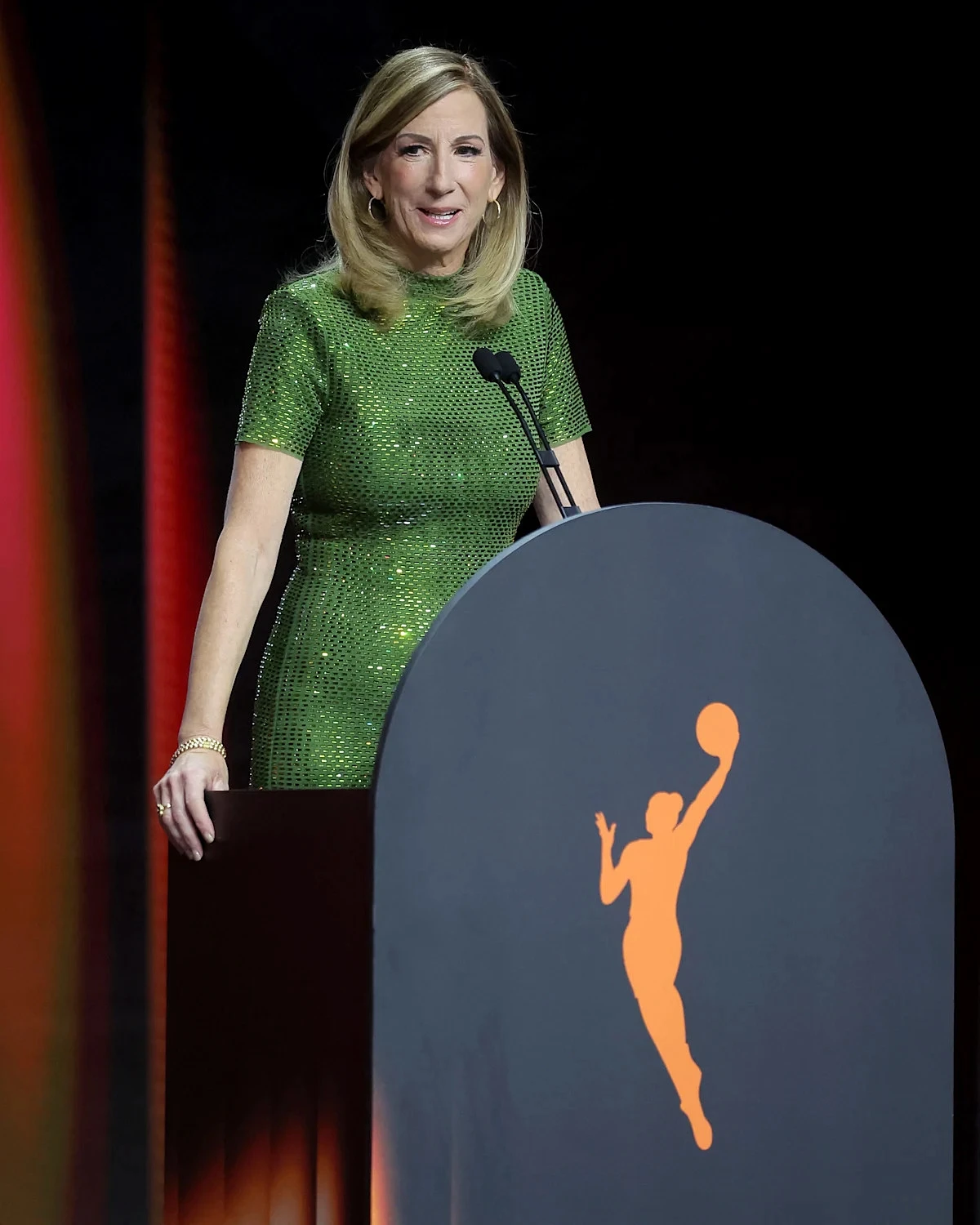 1 / 14Scenes from the 2026 WNBA DraftWNBA Commissioner Cathy Engelbert (left) poses for photos with Azzi Fudd who was selected first overall by the Dallas Wings during the 2026 WNBA Draft at The Shed at Hudson Yards.