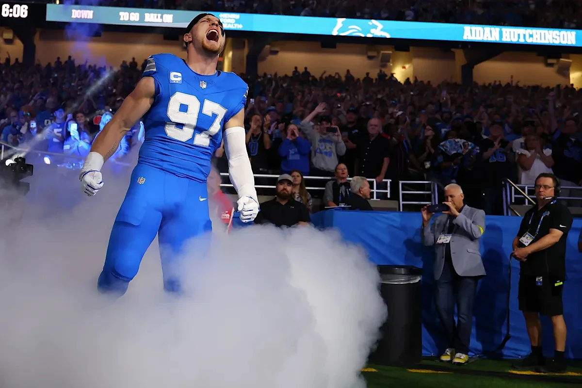 After Detroit took Michigan EDGE, Derrick Moore, at No. 44 overall in the 2026 NFL Draft on Friday night, Lions' franchise cornerstone defensive end Aidan Hutchinson gave an elated reaction on X to another Wolverine joining him in the Motor City.