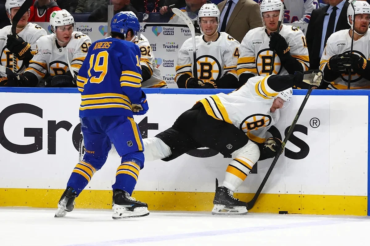 The Sabres erased Boston’s two-goal lead with three goals in less than five minutes. Buffalo added an empty-netter leaving the Bruins stunned on the short end of a 4-3 loss on Sunday.