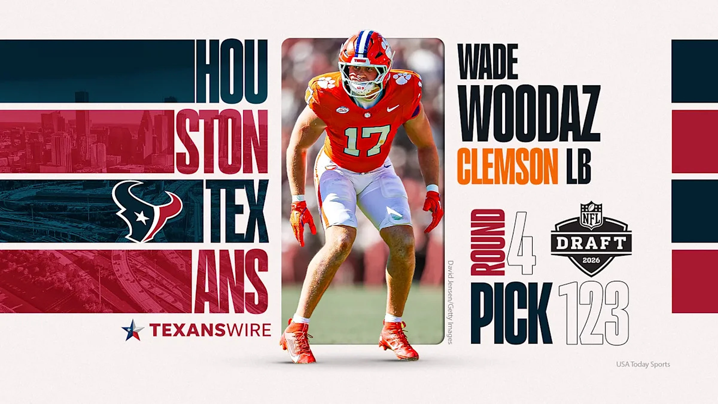 Woodaz was selected by the Houston Texas with the 123rd overall pick in the fourth round of the draft on Saturday in Pittsburgh.