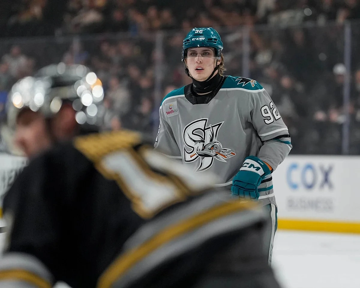 The Barracuda lost the series opener on Wednesday, 5-4 in OT to the Henderson Silver Knights at Lee’s Family Forum. They failed to hold a 3-1 second period lead, off Kasper Halttunen, Jimmy Huntington, and Colin White goals, and couldn’t ride a late game-tying Igor Chernyshov power play strike to victory.