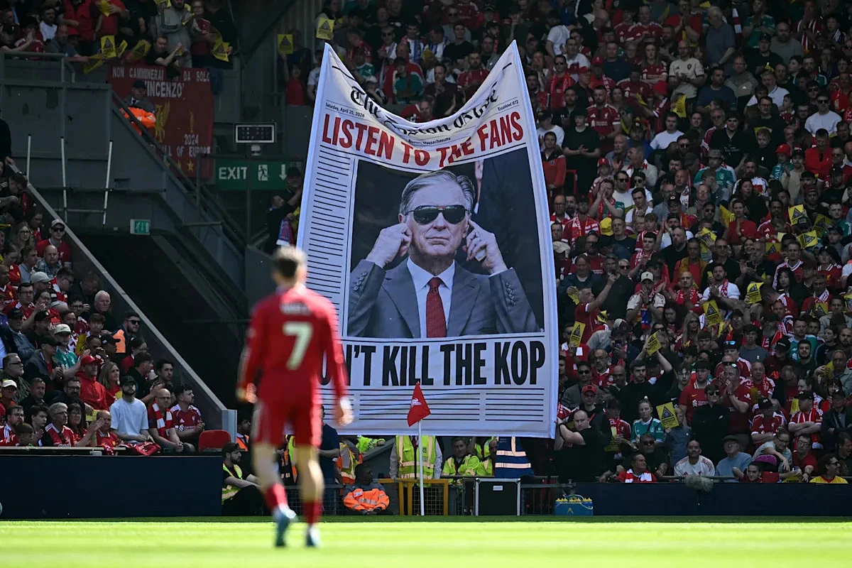 This latest protest comes after a banner was displayed on the Kop during the Premier League match against Fulham earlier this month.