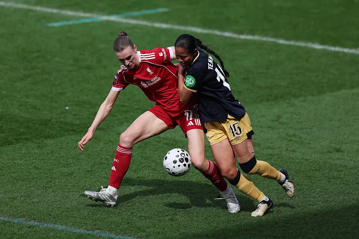 Ceri Holland looks to get Liverpool back in the match as she drives forward down the left channel, getting a step on her defender. She has an eye for goal and sends a low shot