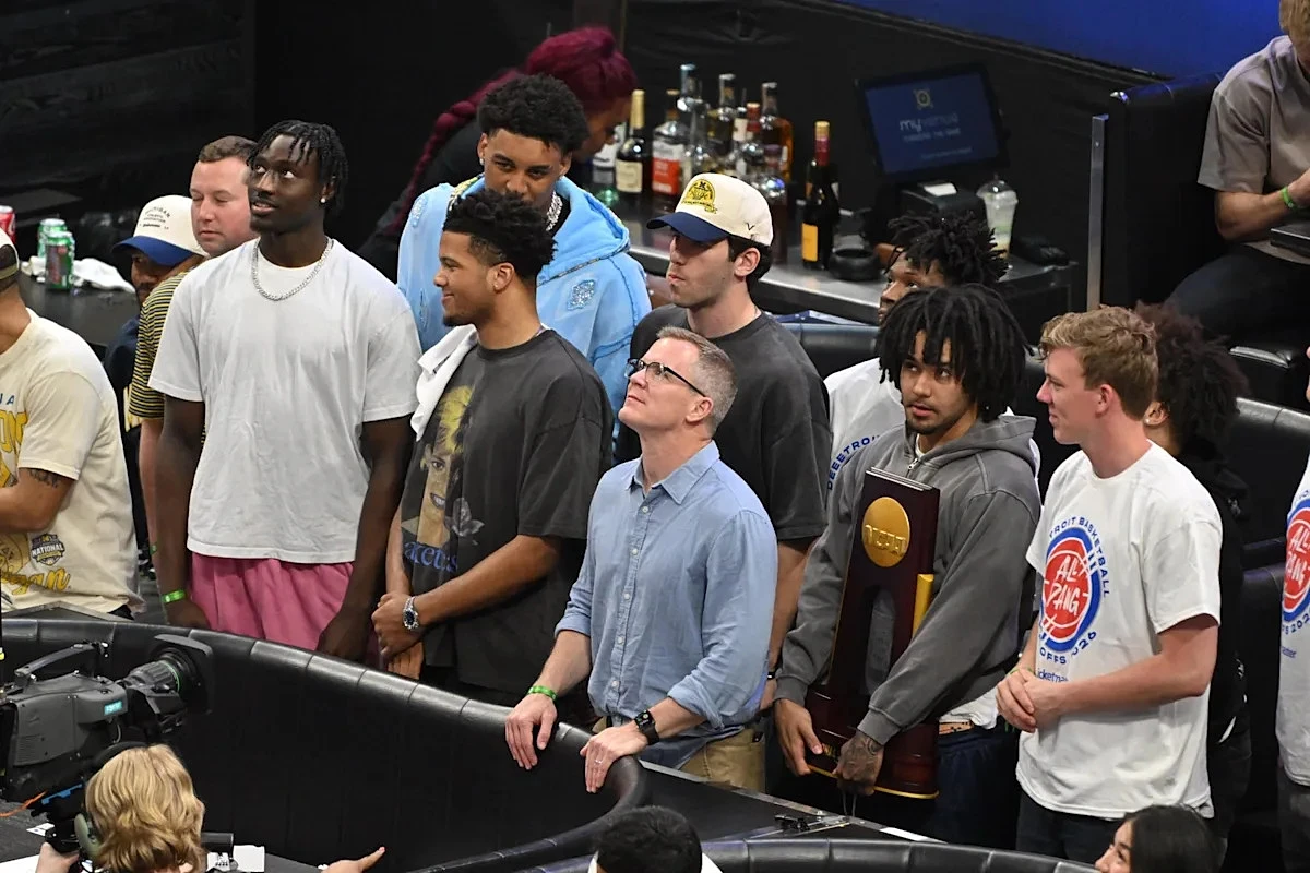 Michigan head coach Dusty May and many of the players were in attendance, including star players Yaxel Lendeborg and Elliot Cadeau, who was the Most Outstanding Player of the NCAA Tournament.