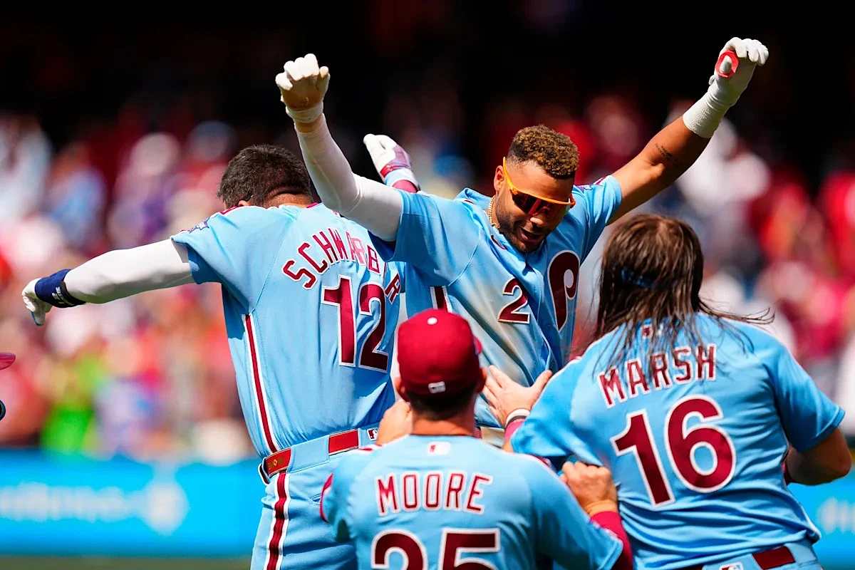 With one out in the bottom of the ninth, Bryson Stott laced a game-tying triple into the right-field corner on the ninth pitch of his at-bat, scoring Adolis García—who had reached on an infield single to start the inning. Stott then held at third on a groundout before rookie Justin Crawford delivered the winning run with an infield single, barely beating out shortstop Willy Adames' throw. It was Crawford's second walk-off RBI of the season, following his 10th-inning heroics against Washington on April 1.