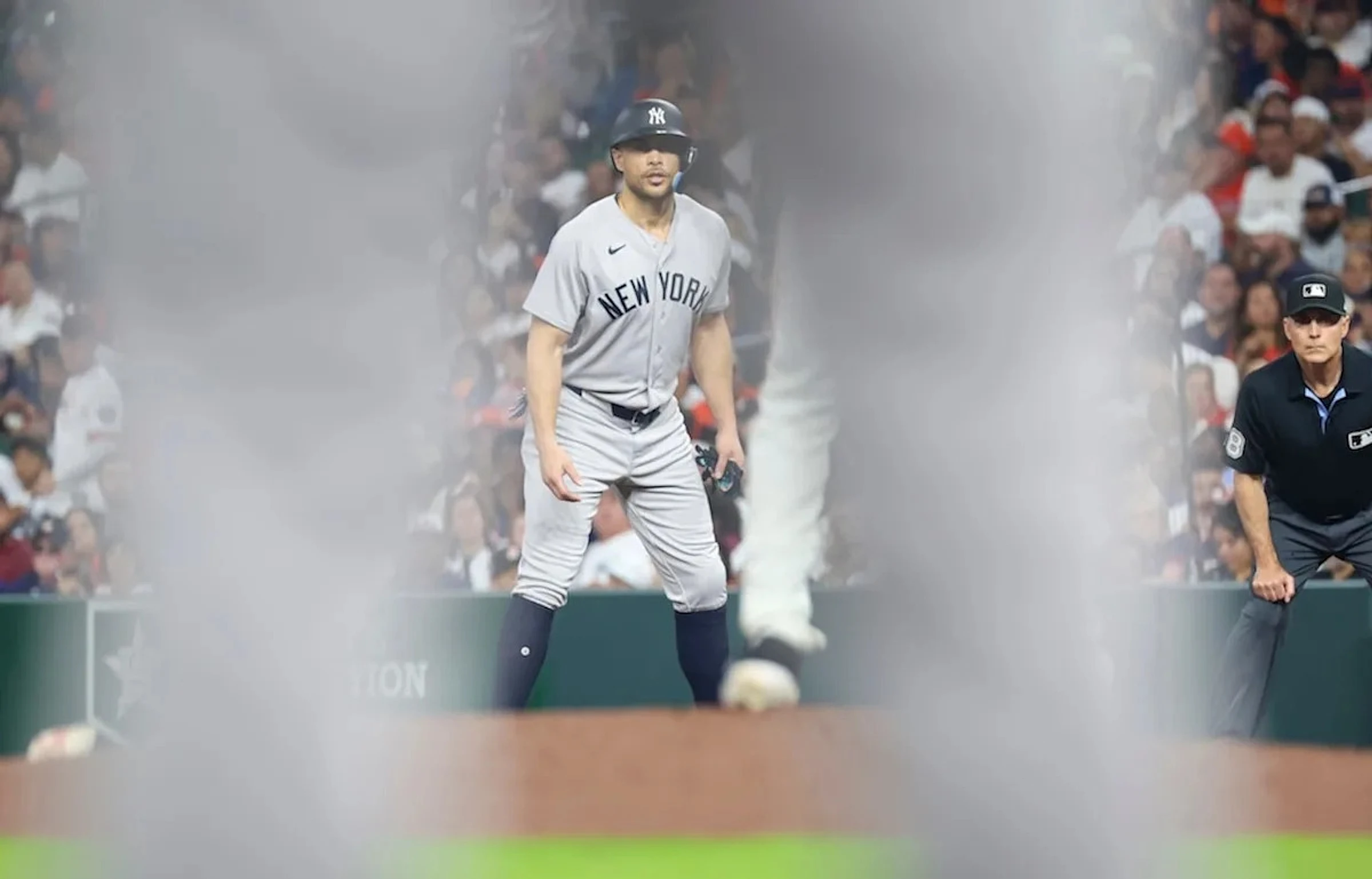HOUSTON — Giancarlo Stanton walked from first base to second base after Jazz Chisholm worked a sixth-inning walk Friday night, then the Yankees slugger stood on the base and waved an arm to his dugout.