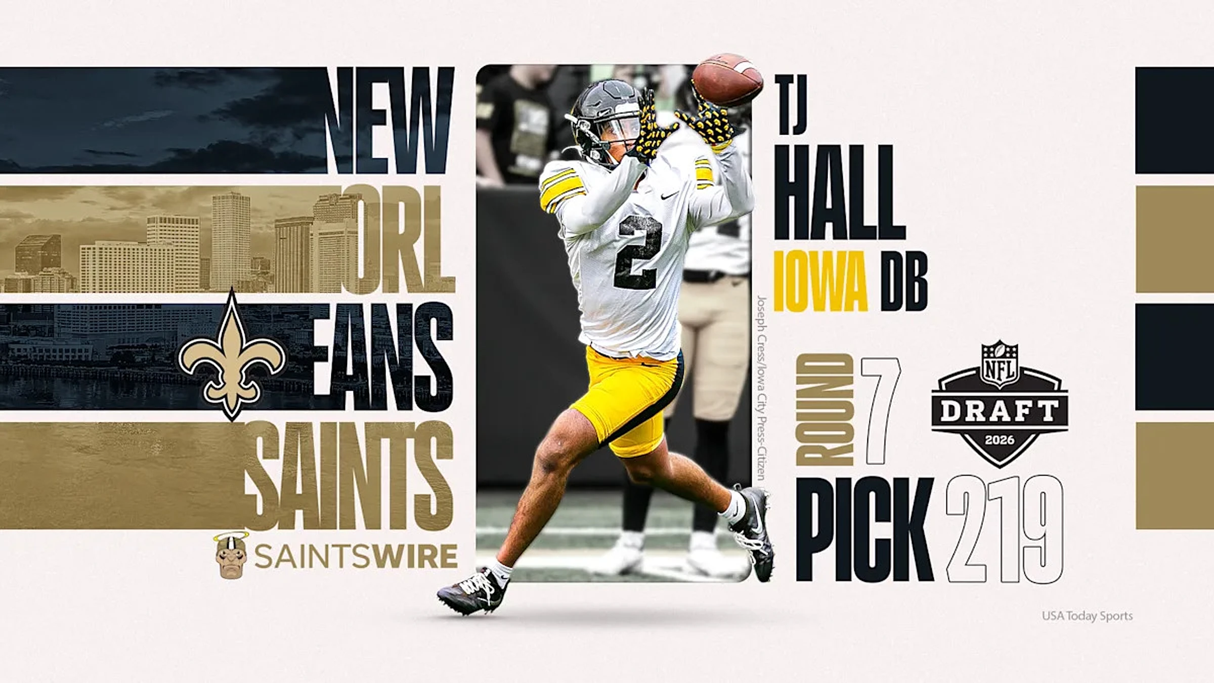 Hall is just the fourth Iowa player ever drafted by the Saints and the first since Austin Wheatley in 2000. While many expected New Orleans to target a cornerback early, they waited until the final round to address the position, making Hall the only cornerback added over the three-day event.