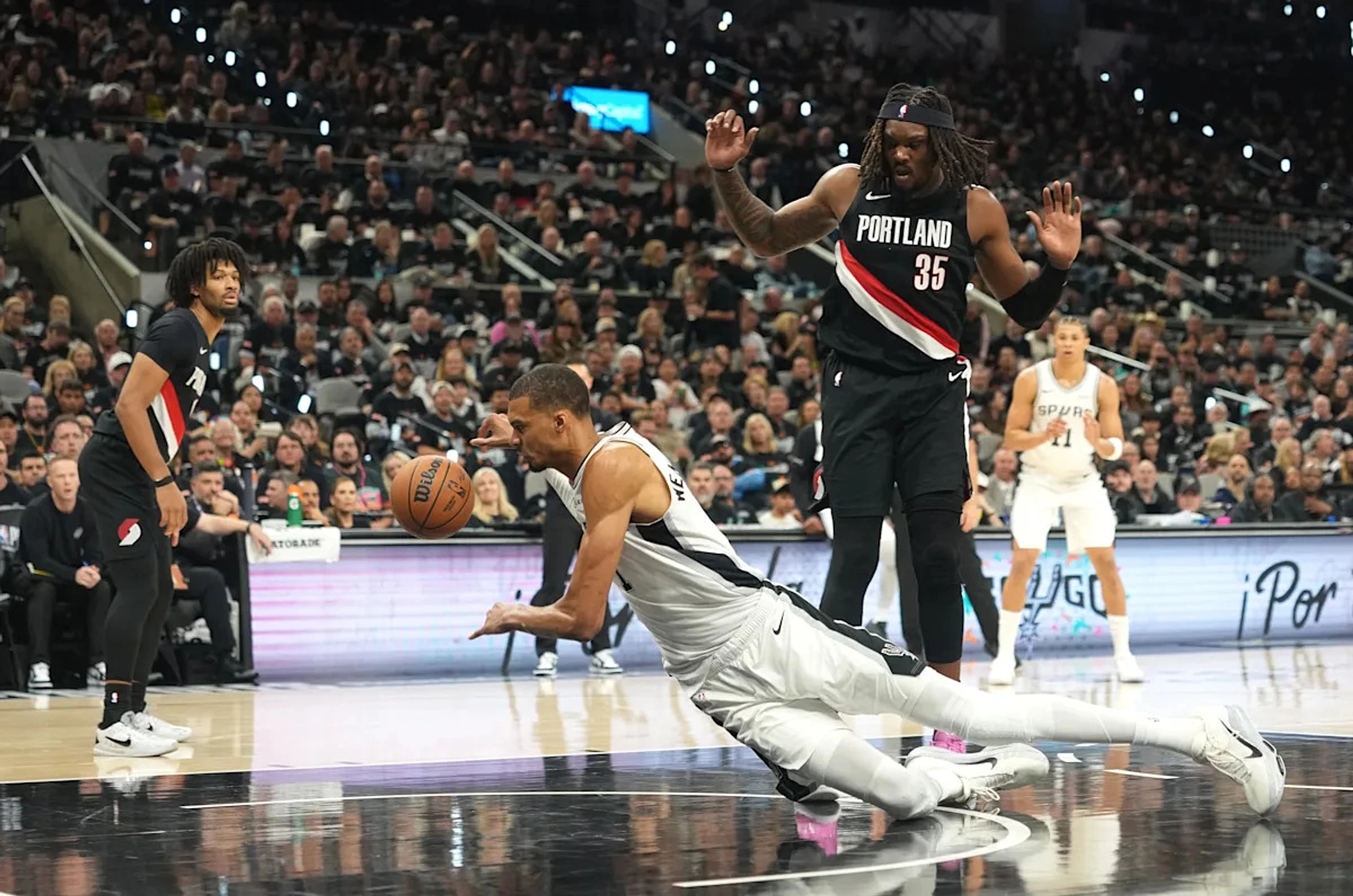 The Portland Trail Blazers will host the San Antonio Spurs in Game 3 of the opening round of the NBA postseason while Victor Wembanyama is injured.