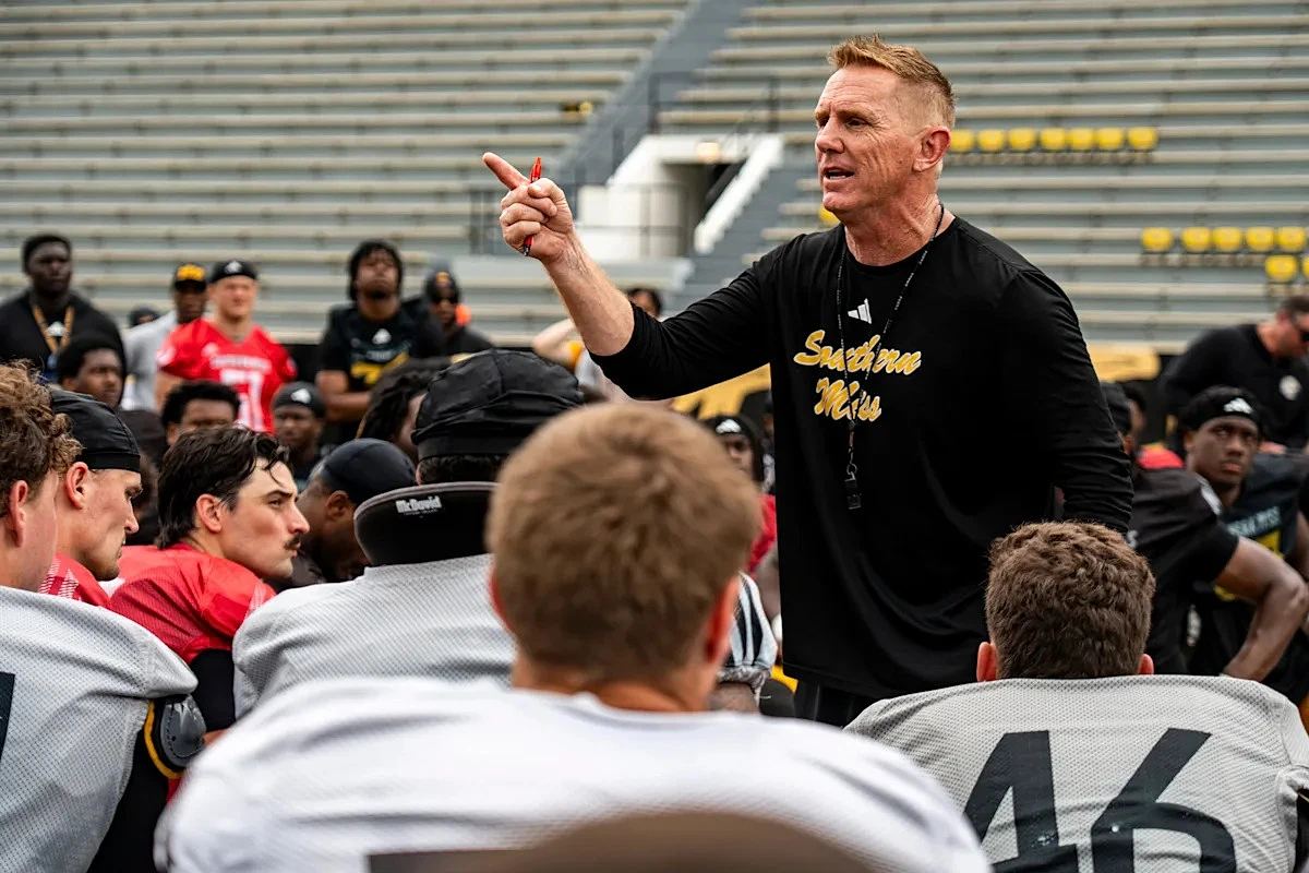 Southern Miss football coach Blake Anderson described the Golden Eagles' offseason progress with 67 newcomers after the spring game on April 18.