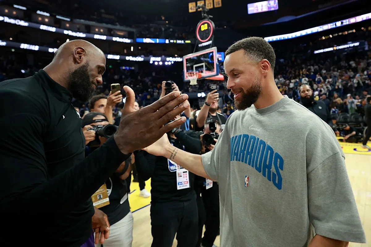 Steph Curry paid homage to LeBron James by breaking out a pair of his classic signature shoes on Thursday night at Chase Center.
