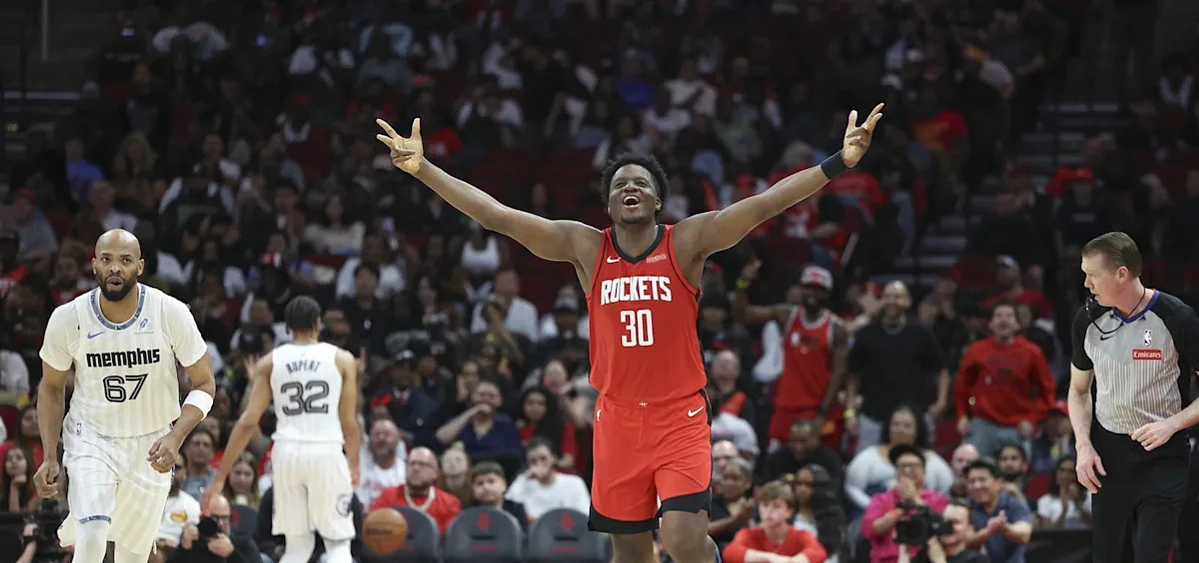 Clint Capela dominates the glass and scores a season-high, sinking his first-ever three-pointer in a career-defining performance.