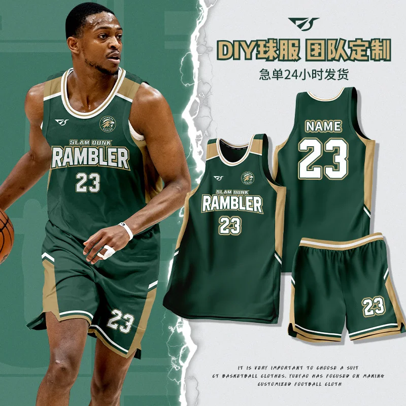 新款篮球服套装男定制学生篮球比赛队服运动训练美式绿色球衣
