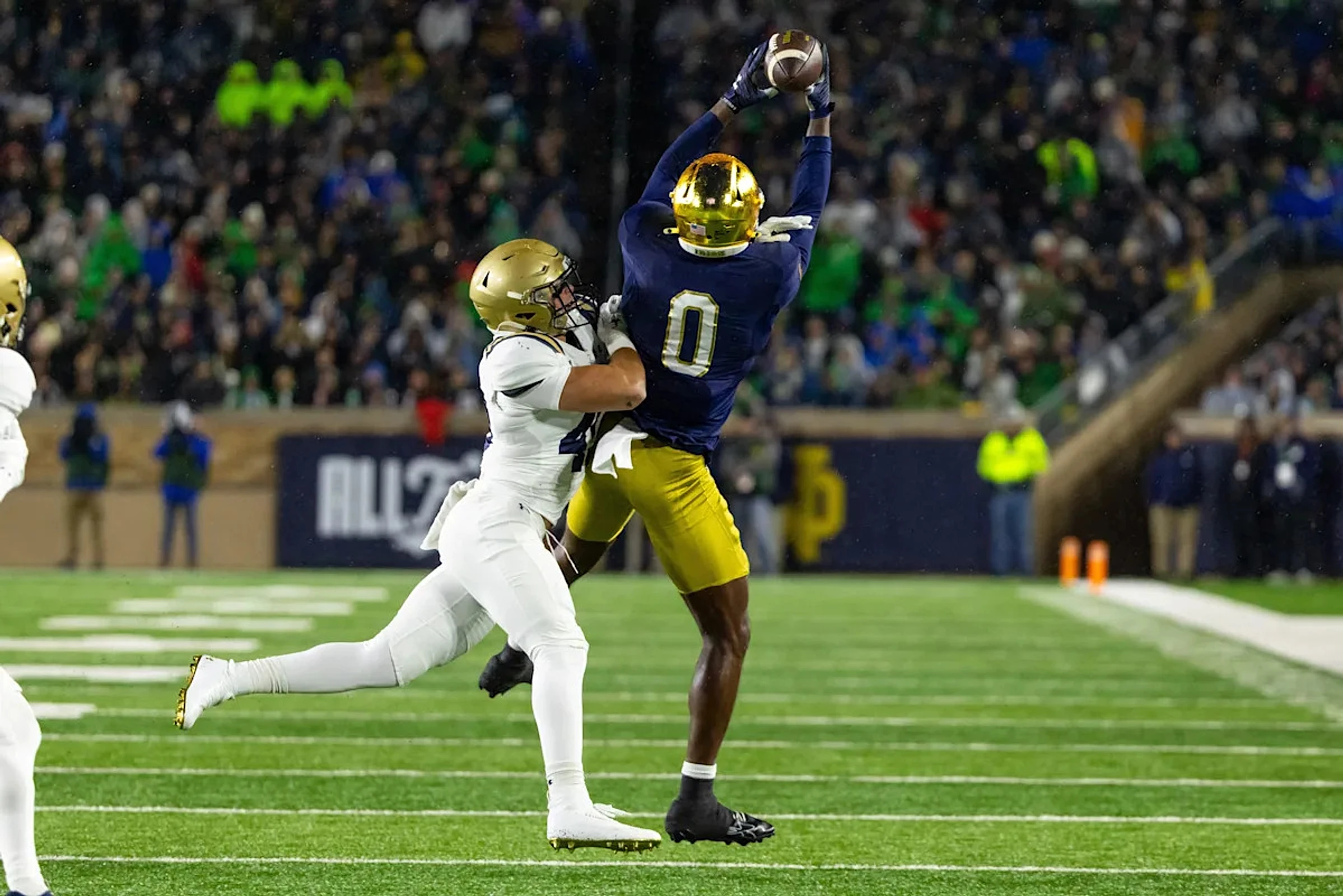 Notre Dame Fighting Irish wide receiver Malachi Fields is 6'4.5", 218 lbs. with 32 1/8" arms and an 82nd percentile wingspan. He is a true X receiver with elite size that translated to double-digit contested catches in each of the past three seasons. He and players like Thornton and Rice win in completely different ways, allowing them to coexist in an offense.