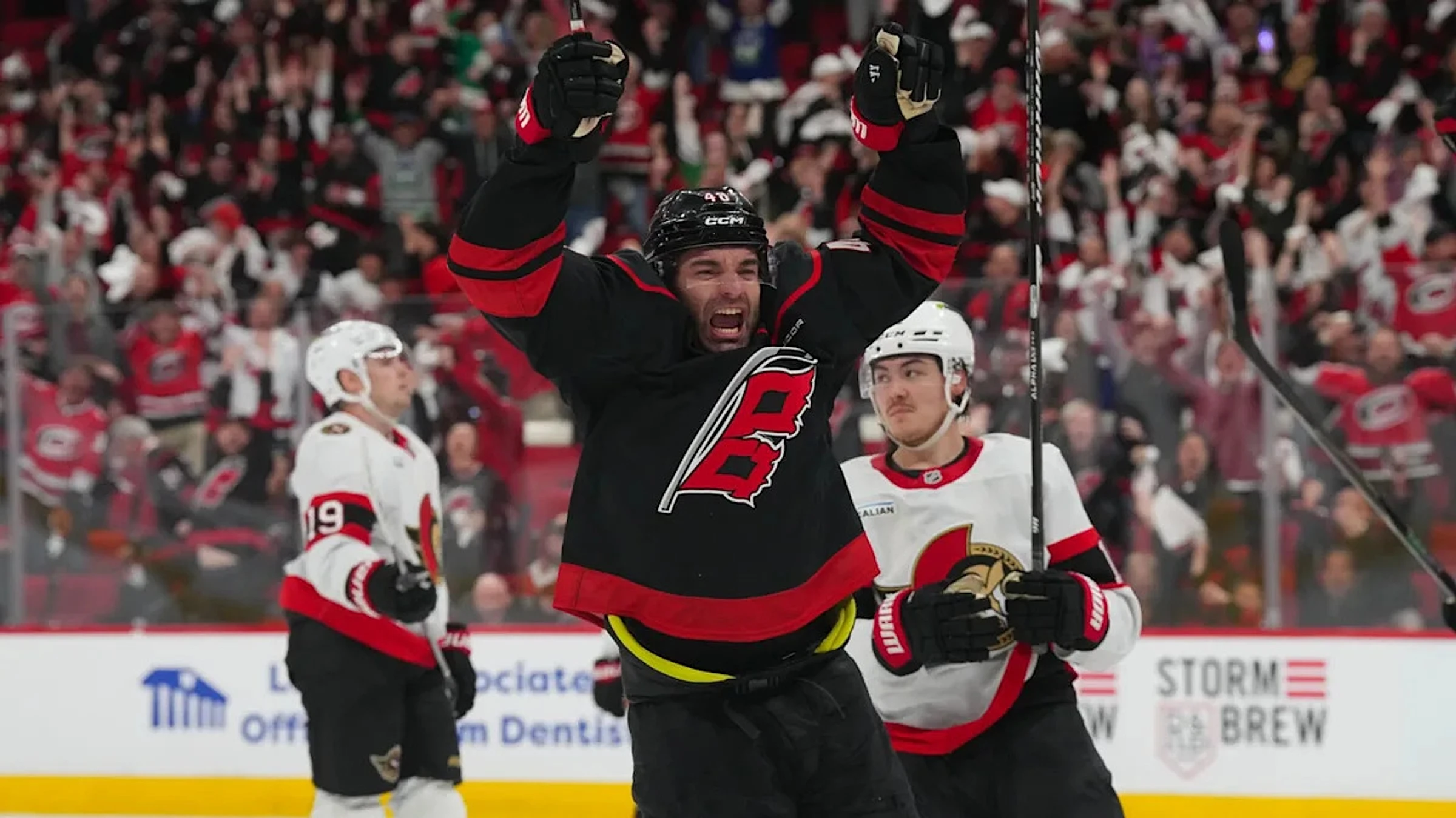 The Hurricanes ultimately came out on top — after the Senators nearly got their own sudden-death winner in the second overtime when Michael Amadio got an in-close shot. Frederik Andersen made the stop with his glove to deflect the puck, which kept rising and hit the crossbar before bouncing away.