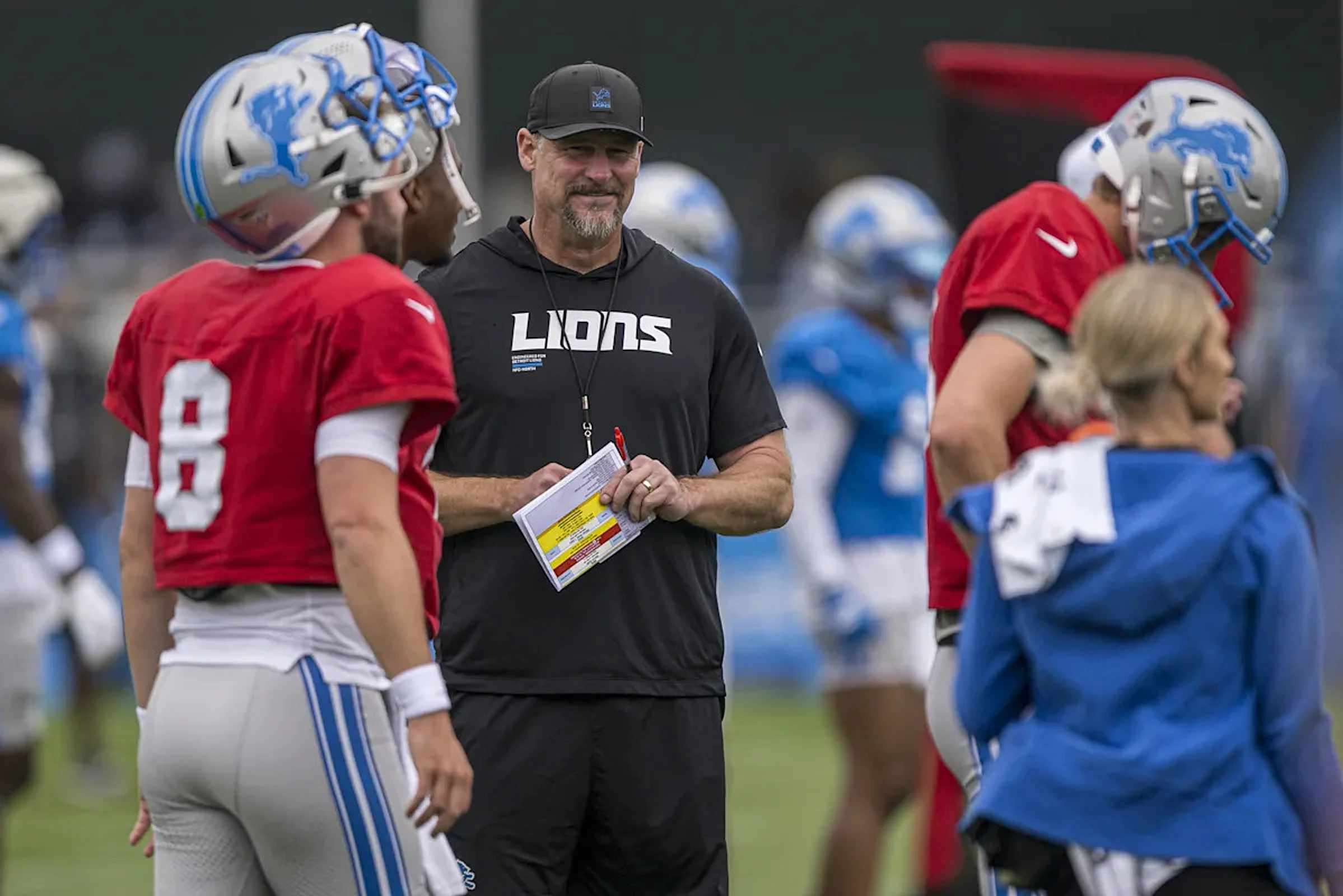 The real questions happen behind those three, and I believe Greg Dortch is the Raymond replacement, but he should shine more in special teams than on offense. With TeSlaa improving and seeing more playing time, I think Dortch will have a smaller role than Raymond did on offense. That means the battle for WR5 is between second-year receiver Dominic Lovett, fifth-round pick Kendrick Law, and a few others. Lovett could miss the cut here due to Dortch taking over punt return capabilities and Law returning kicks, but I think the team sees potential in Lovett being WR4 in 2027.