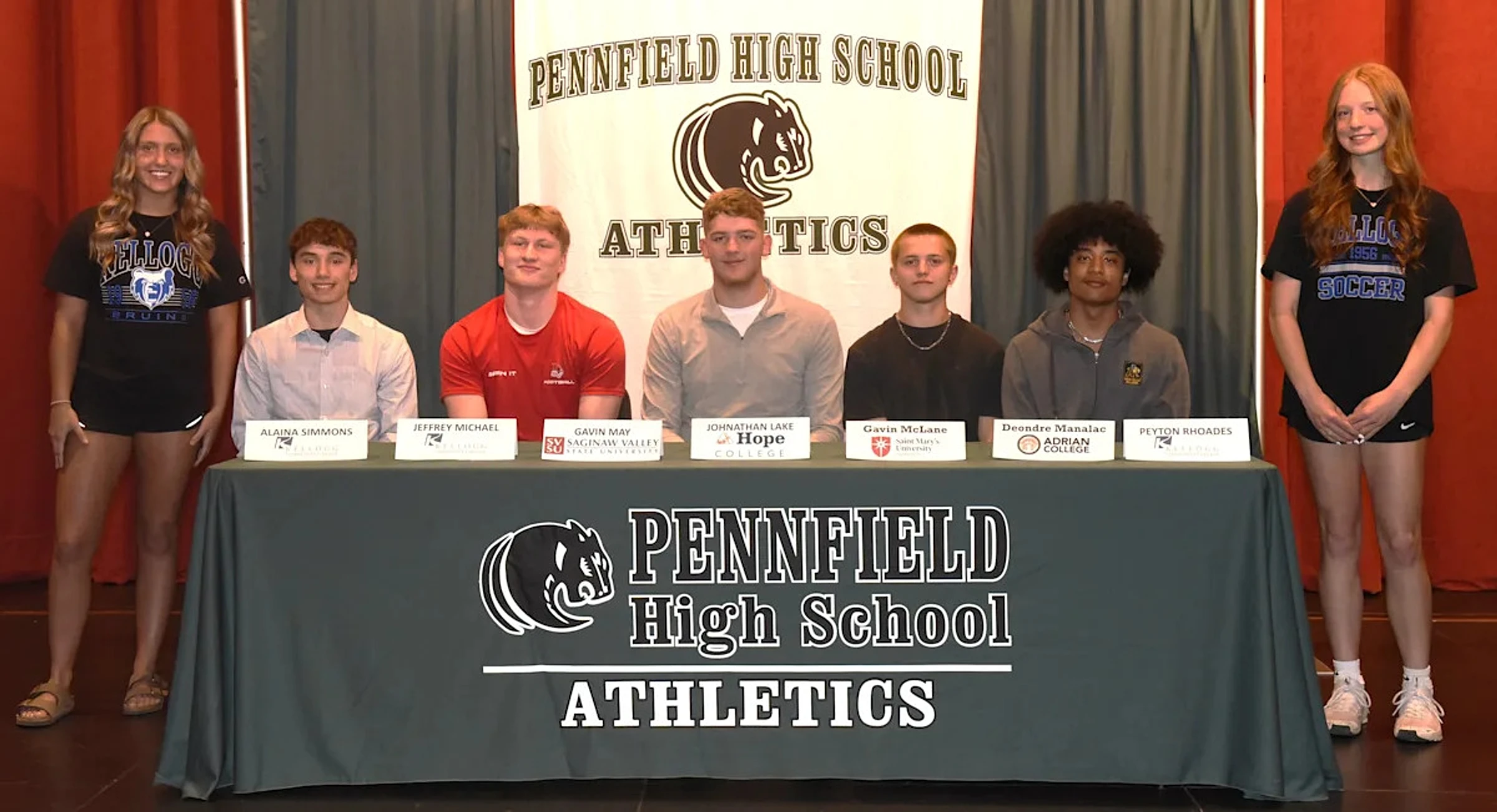 May was part of group of seven Pennfield standouts who were part of a ceremonial signing ceremony in the Pennfield High School auditorium on Wednesday, April 22, announcing their college intentions in front of friends, teammates and family.