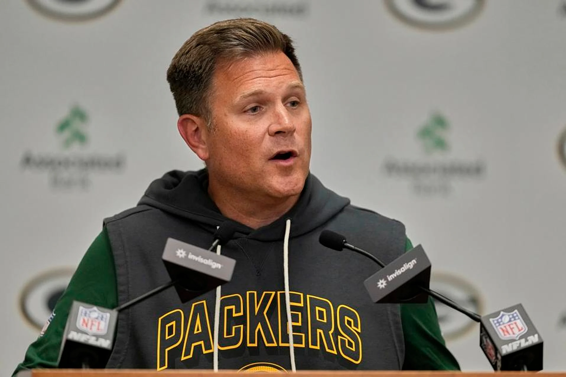 Green Bay Packers general manager Brian Gutekunst doesn't have a first round pick in this week's NFL Draft.