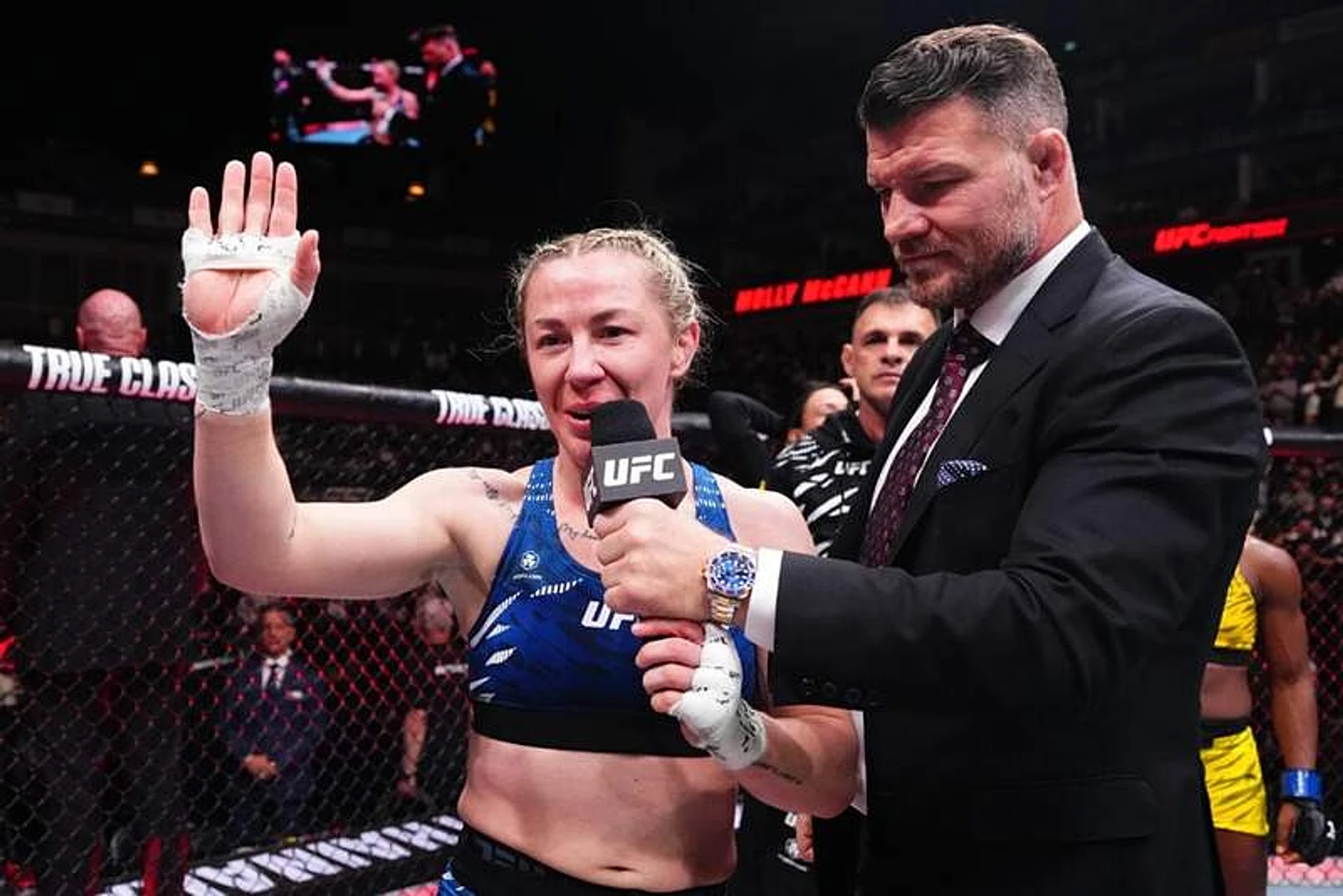 Webster stuck around for a multi-song set as Johnson tried to stay loose in the ring. It was McCann’s first fight in Liverpool since 2018 when she lost to Gillian Robertson by submission, but this night took on a very different tone.
