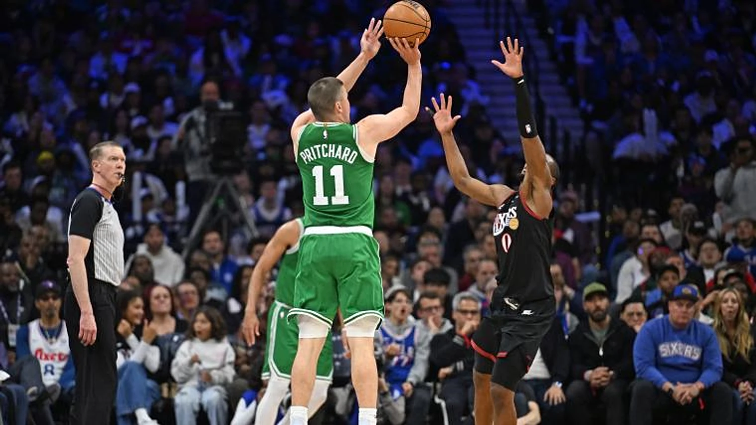 Payton Pritchard put on a show during the Boston Celtics' 128-96 rout of the Philadelphia 76ers on Sunday.