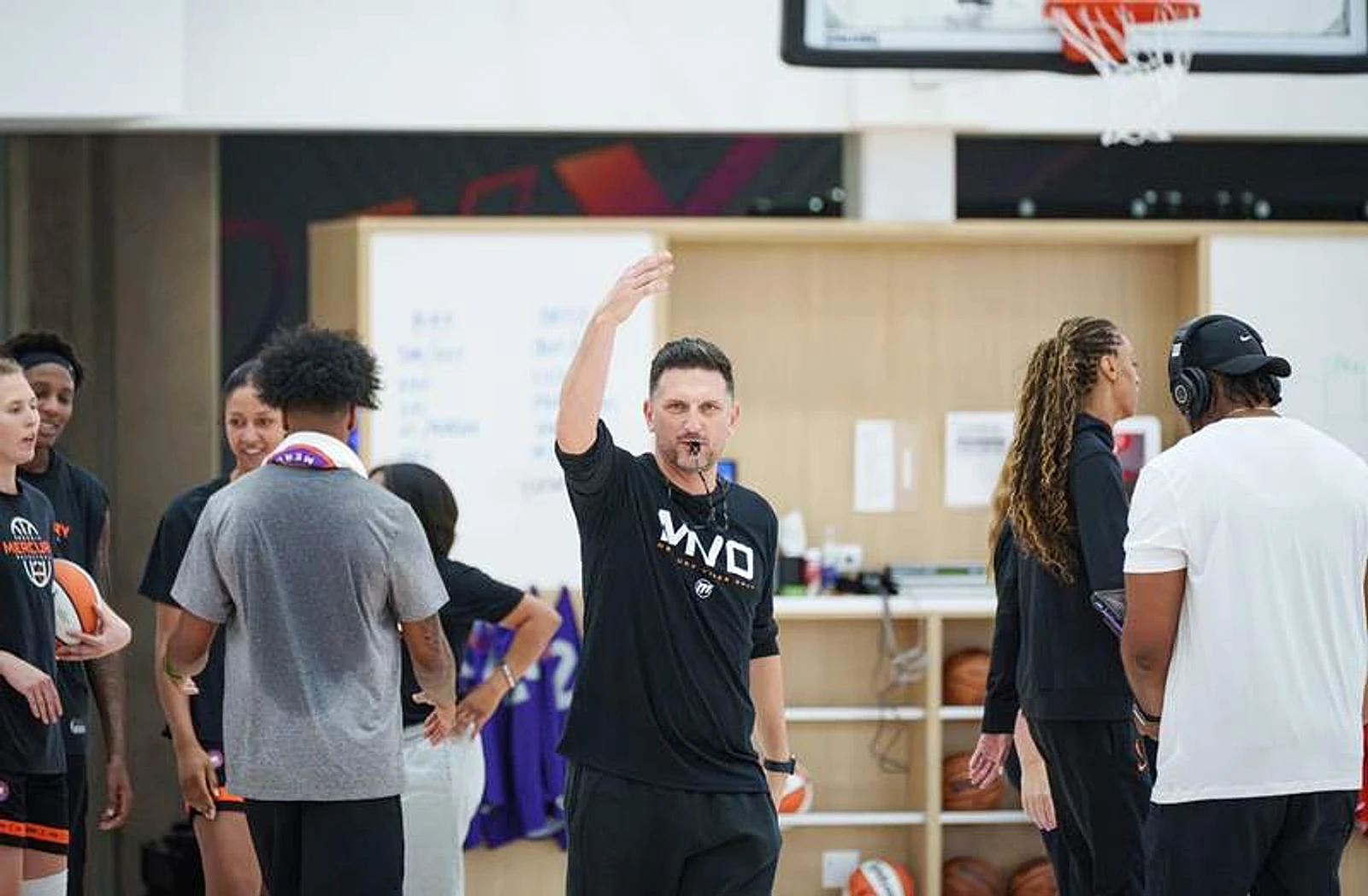 Head coach Nate Tibbetts leads practice at Mercury training camp for the 2026 season at Mountain America Performance Center on April 19, 2026, in Phoenix. © Megan Mendoza/The Republic / USA TODAY NETWORK via Imagn Images