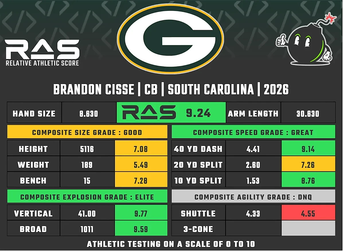 Here’s a quick look through at the RAS cards for all six of the Packers’ 2026 draft picks, plus a few of the reported undrafted free agents:
