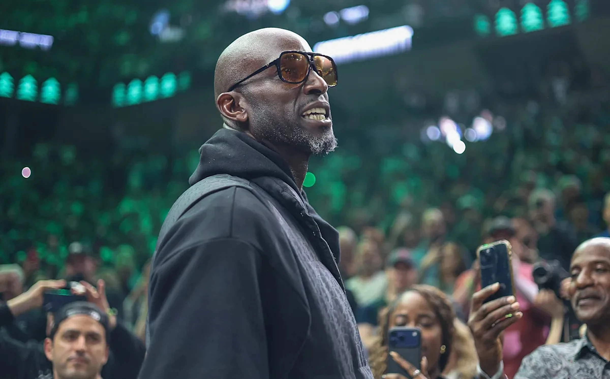 The Hall of Fame forward and all-time franchise leader in nearly every major statistical category walked into the arena with Timberwolves co-owners Marc Lore and Alex Rodriguez after player introductions, receiving a roar from the crowd and patting his heart with his hand. After giving current star Anthony Edwards a bear hug, Garnett took his courtside seat.