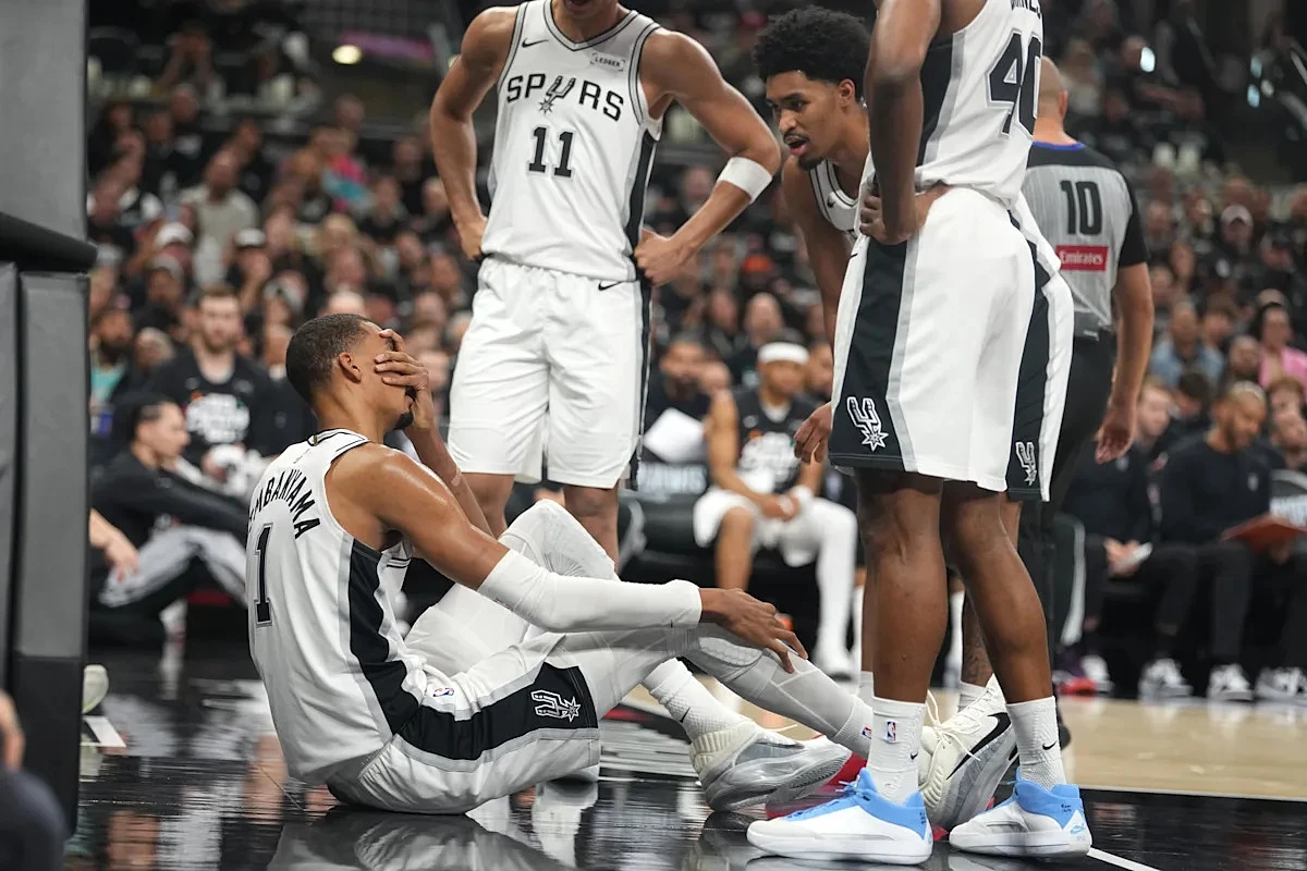 Wembanyama hit his face on in the floor at near-full speed after being knocked off his feet during a drive to the basket at the 8:57 mark of the second period, with the contact leaving him dazed enough to struggle standing up before jogging off the floor to the locker room.