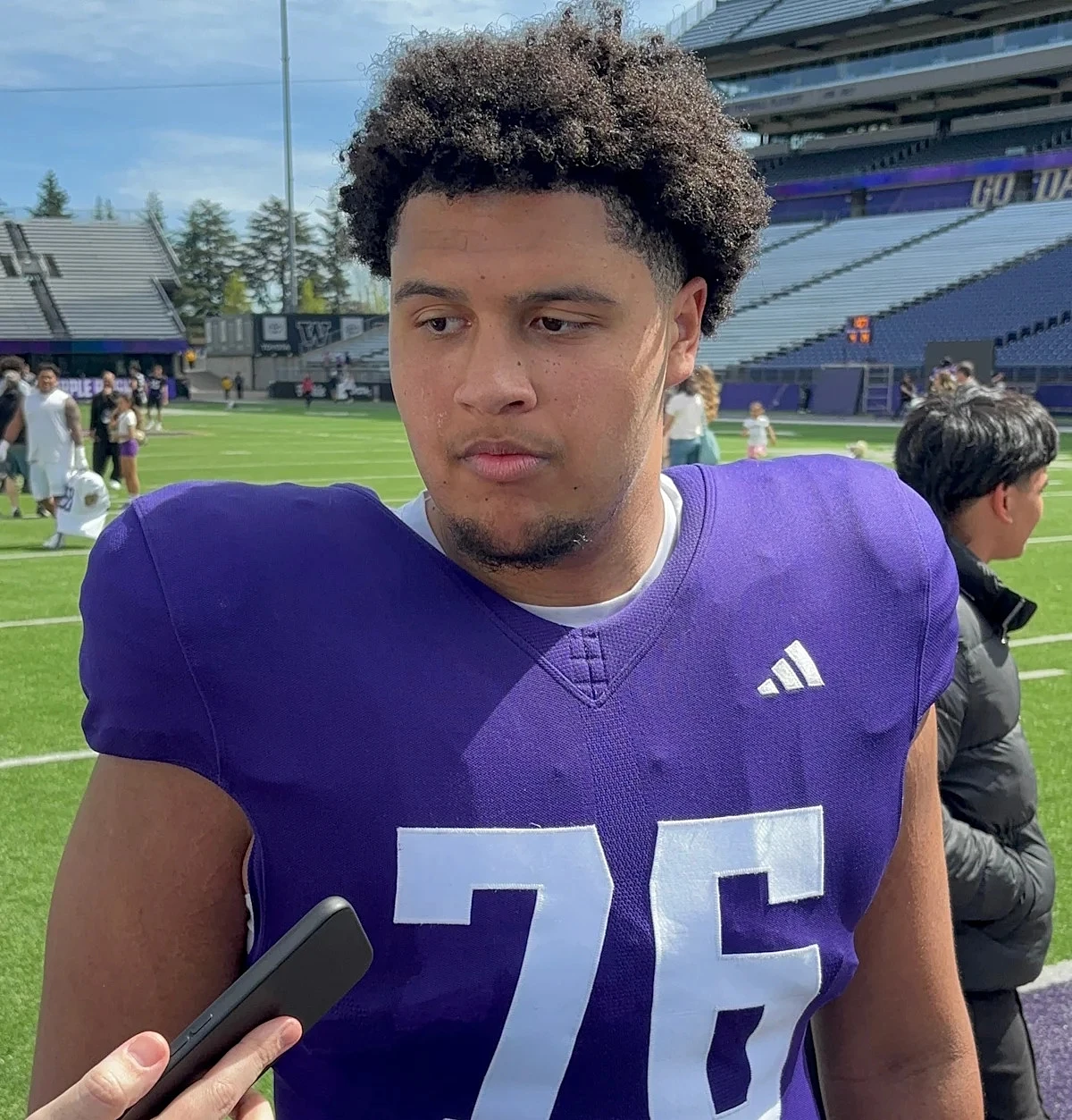 Throughout spring practice, Greene has shown off rare traits for a freshman. Not only does he check everything the Huskies are looking for athletically, but he's also shown off high-end composure and intelligence, rarely panicking or losing track of his assignment, no matter what kind of stunt or disguised pressure package defensive coordinator Ryan Walters has thrown at him.