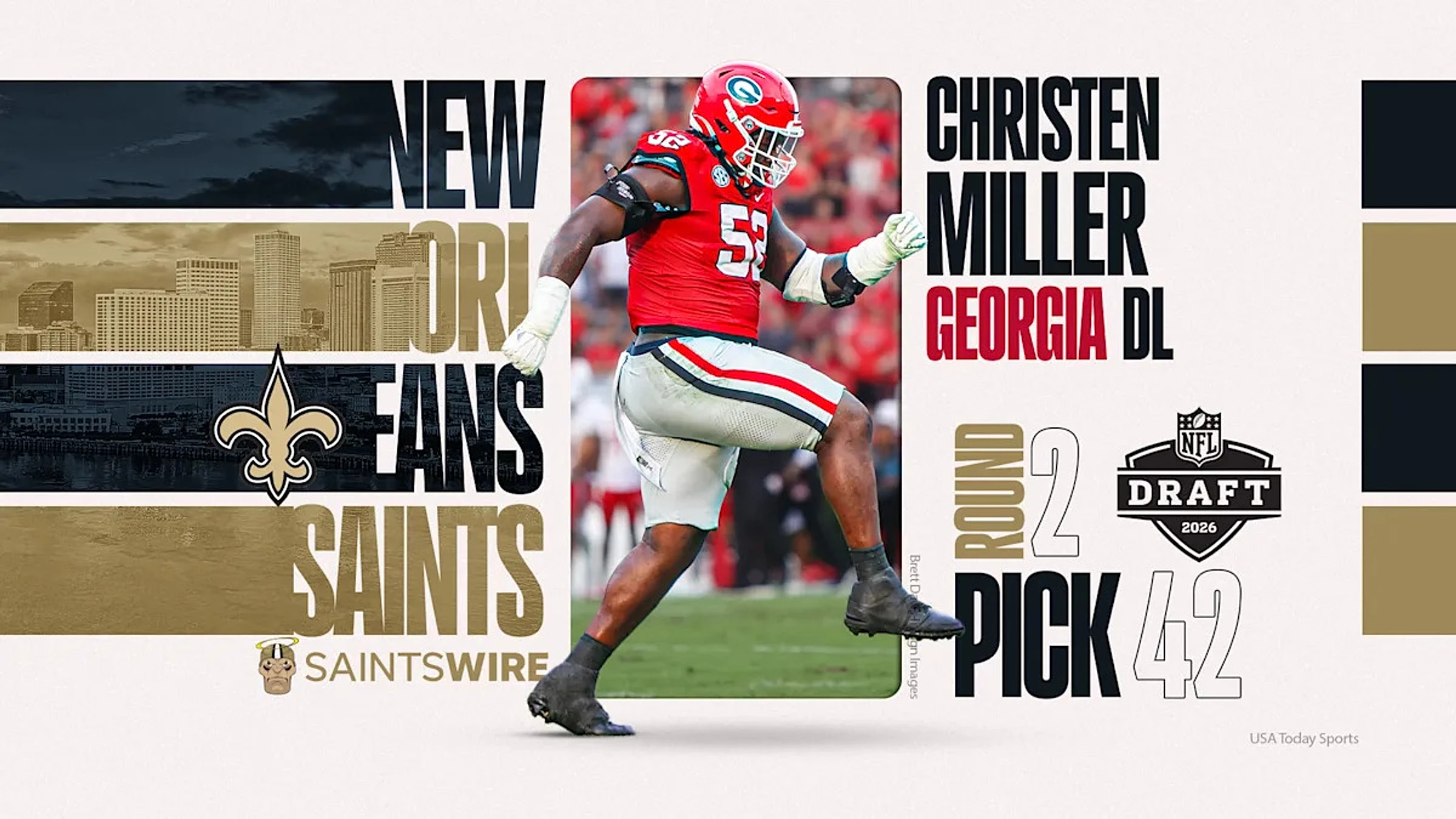 After picking wide receiver Jordyn Tyson with the eighth choice in the first round on Thursday, the New Orleans Saints came back on Friday to go defense in the second round. With the 42nd overall selection and the 10th choice of the second round, the Saints went with Christen Miller, a Georgia Bulldogs defensive tackle. Most expected New Orleans to address edge rusher or cornerback in the second round. They went another direction on that side of the ball instead, looking to upgrade a run defense that showed improvement in 2025 but still ranked only 19th in yards allowed.