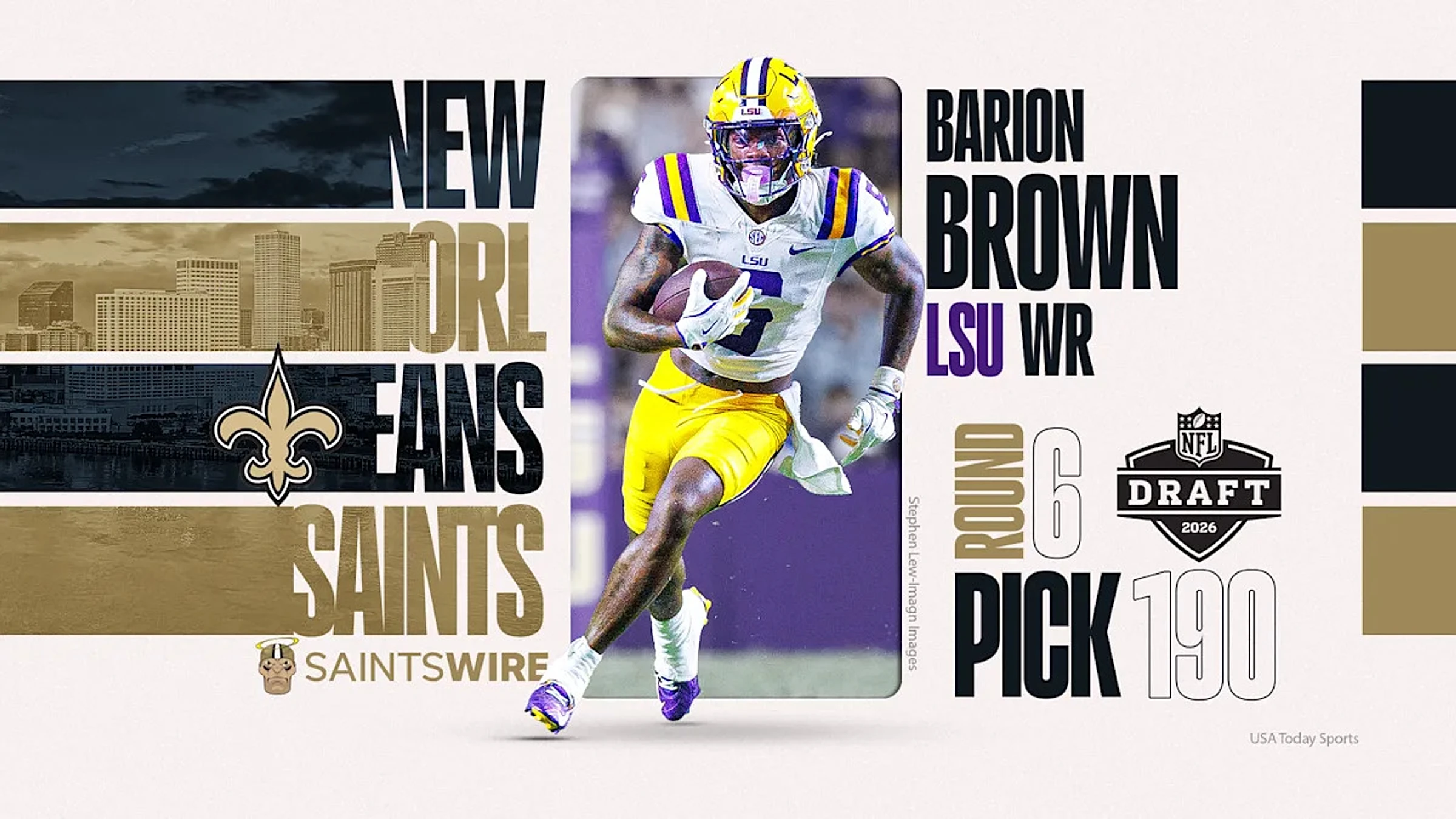 The New Orleans Saints made a surprise move on the final day of the 2026 NFL Draft, selecting LSU Tigers wide receiver Barion Brown with the 190th overall pick in the sixth round. Brown becomes the third receiver added by the Saints through this draft, following first-round pick Jordyn Tyson from Arizona State and fourth-round selection Bryce Lance from North Dakota State. He's also the first LSU player drafted by New Orleans since 2018, and only the third Tiger picked by the team in the last 21 years.