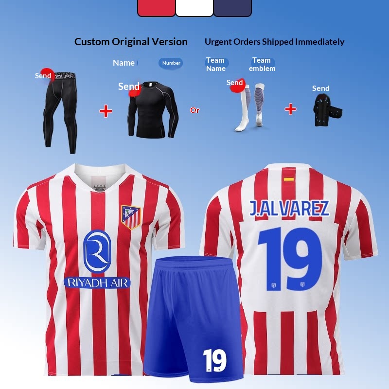 Atletico Madrid 2526 Home Kit #19 Alvarez Jersey Set