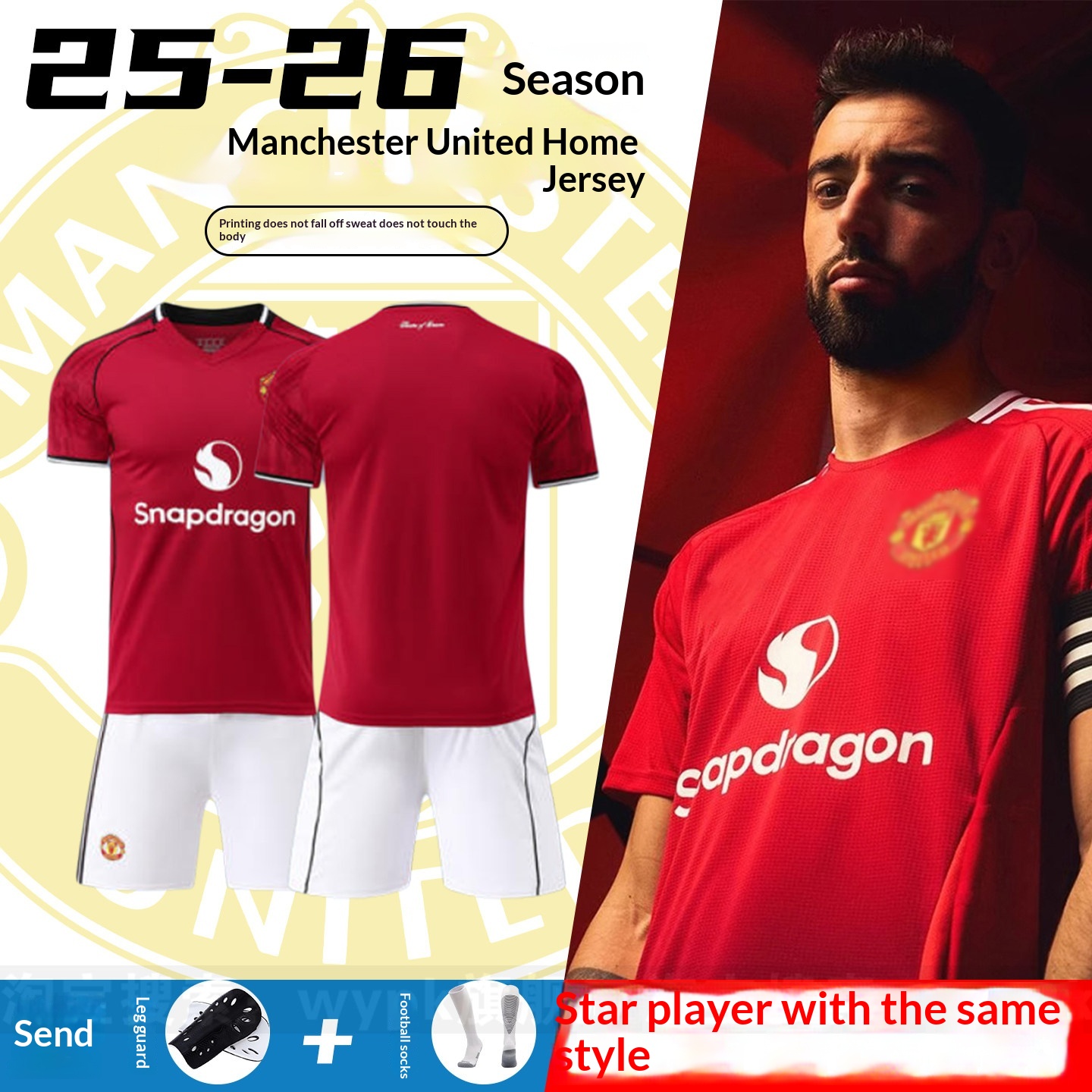Manchester United 2526 Home/Away Jersey Kit with B.Fernandes & Garnacho Training Set