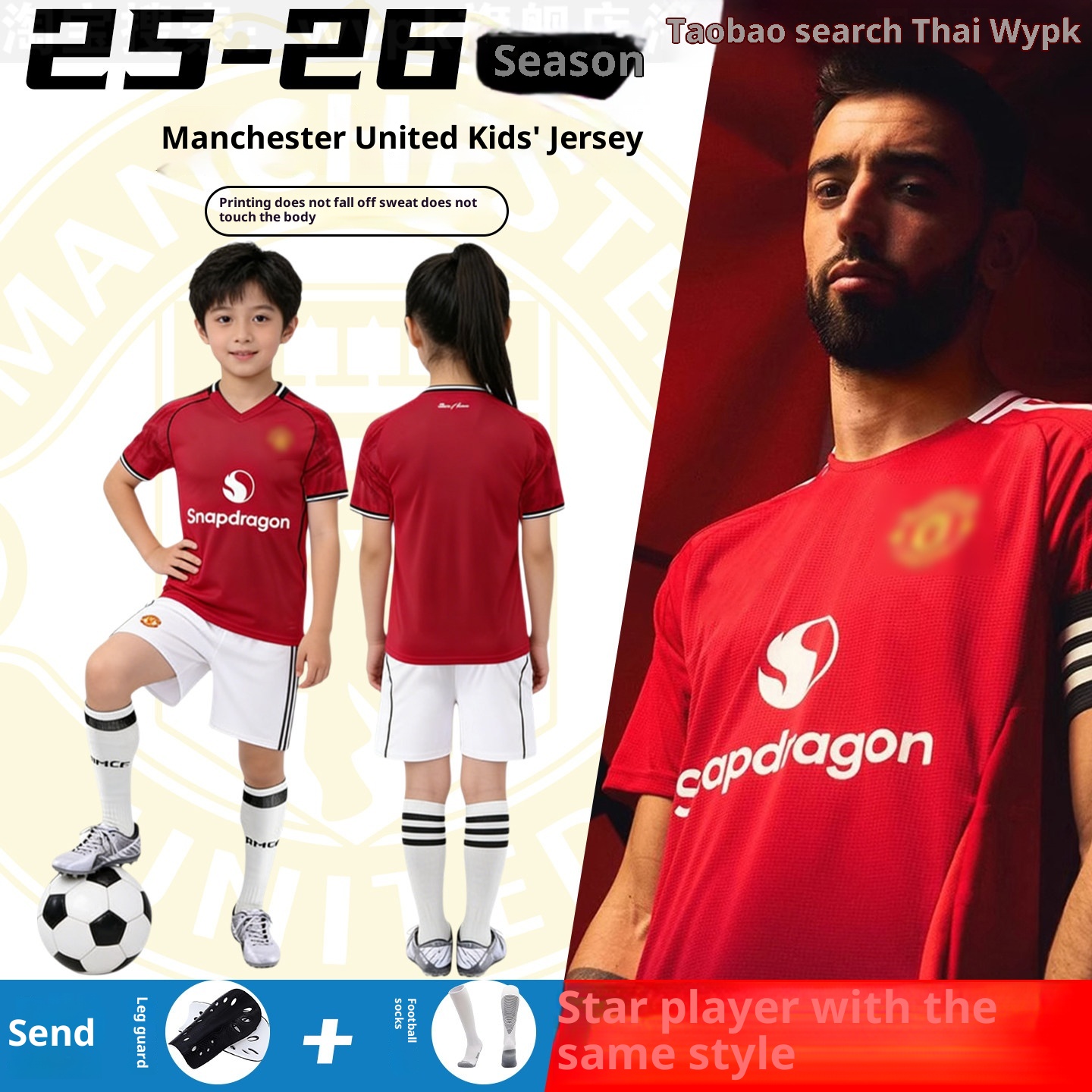Manchester United 8 Bruno Fernandes Home/Away Kids Football Jersey Set