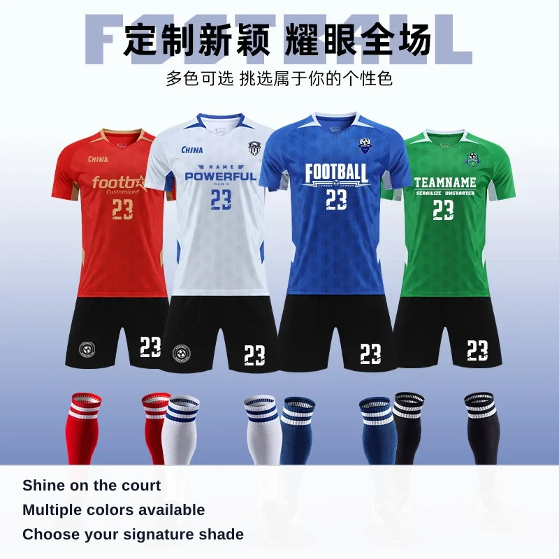 Soccer Jersey Set Custom for Men, Adult Sport Short Sleeve Training, Children's Match Team Uniform, Breathable Soccer Jersey with Number and Name Printing